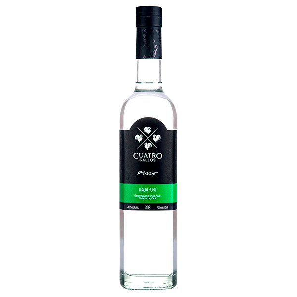 El Cuatro Gallos Italia es un pisco puro que usa uvas vineras de la variedad Italia con una limpidez y brillo que impresiona a la vista. De buena intensidad y amplios aromas, es un pisco complejo donde resalta, con mucha elegancia, varias notas cítricas.